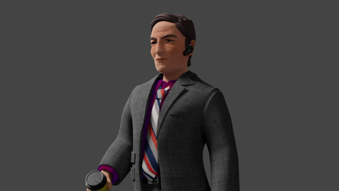 3D Character Model of Saul Goodman - modelled in Maya, textured in Substance Painter.