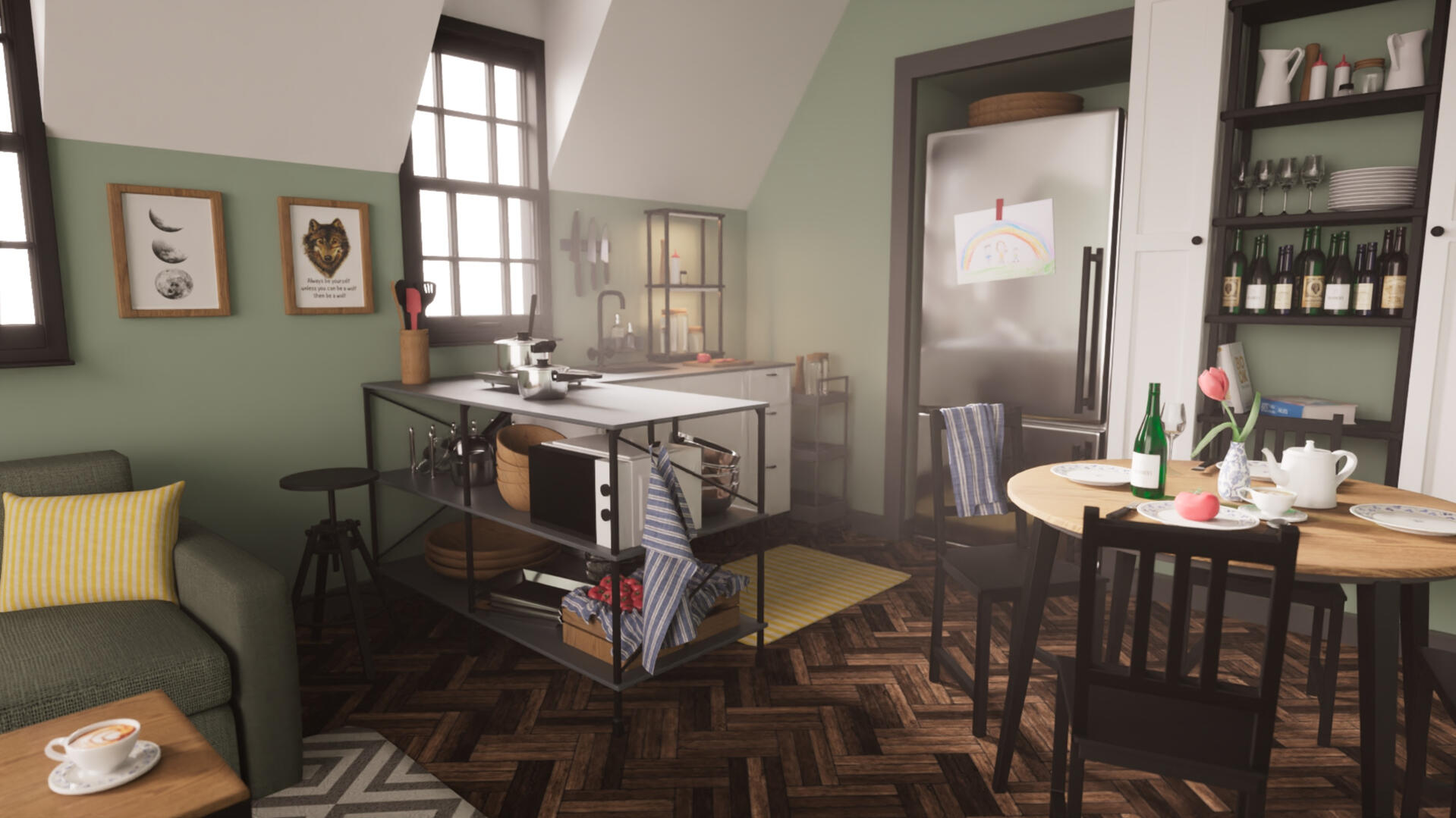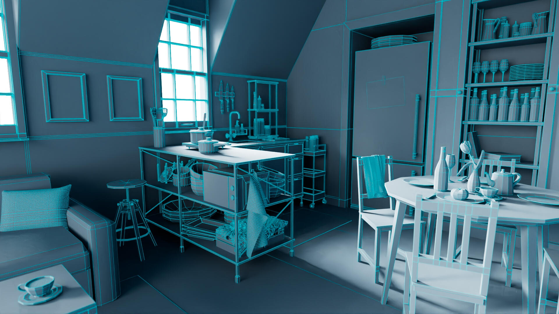 3D Environment Model of a Kitchen - modelled in Maya, textured in Substance Painter.