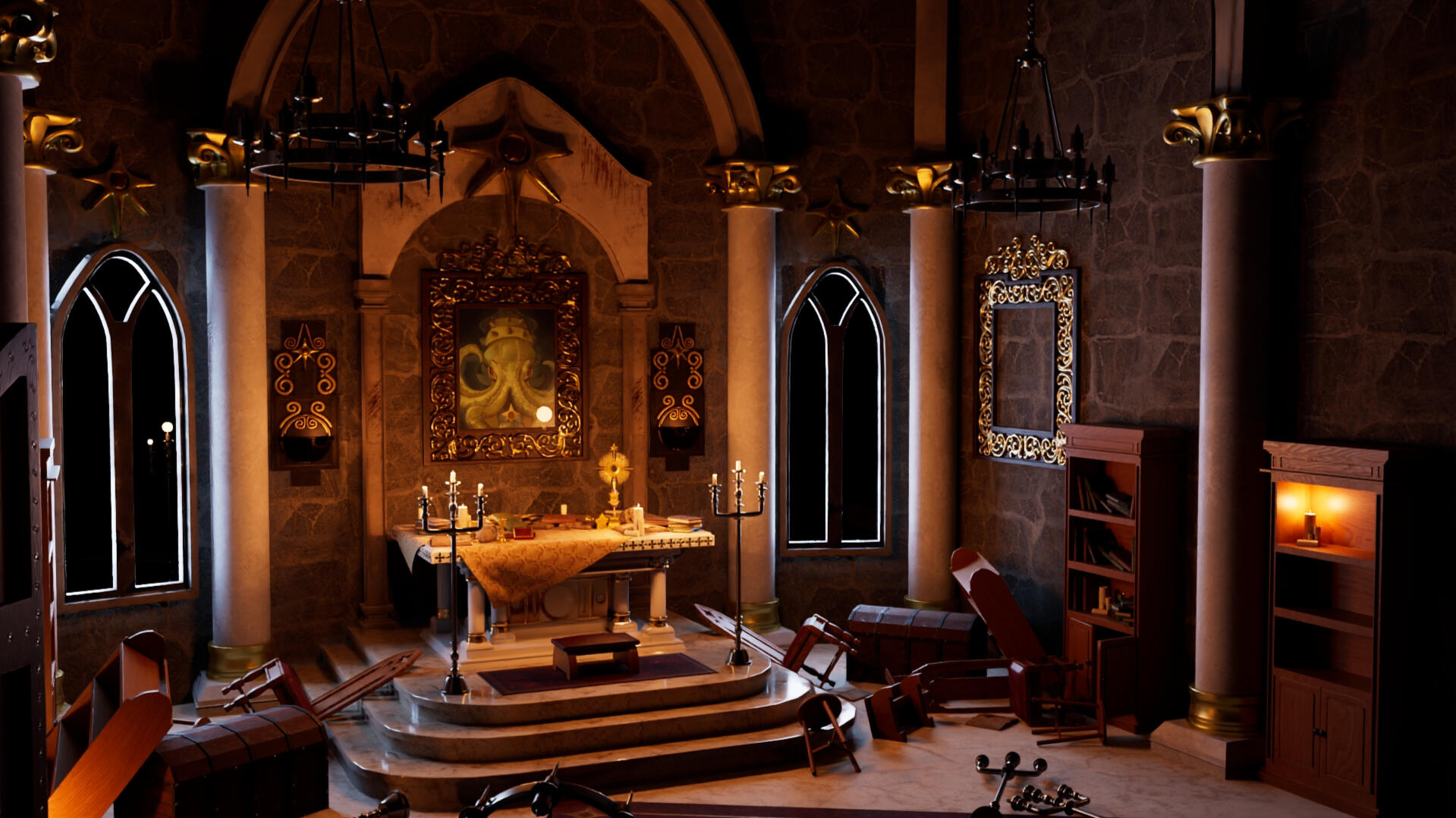 A forgotten character, Ika, walks into an abandoned prayer room in search of something that they’ve been missing for a long time…Group project completed within the span of 3 months - my role was to model + texture the environment & props, create lighting, and all things post production.