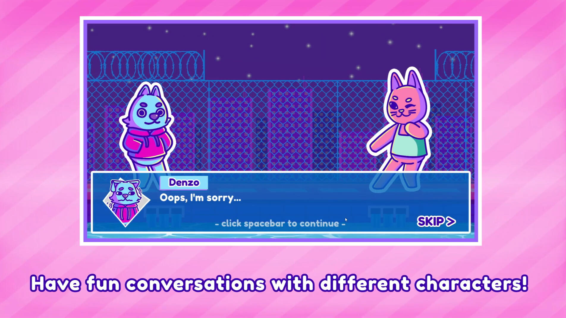 Dance Rush! is a rhythm game where you compete in freestyle music battles with the ultimate goal of emerging as the dance champion.Group project completed within the span of 3 months - my role was to design & animate the characters and all things post-production.