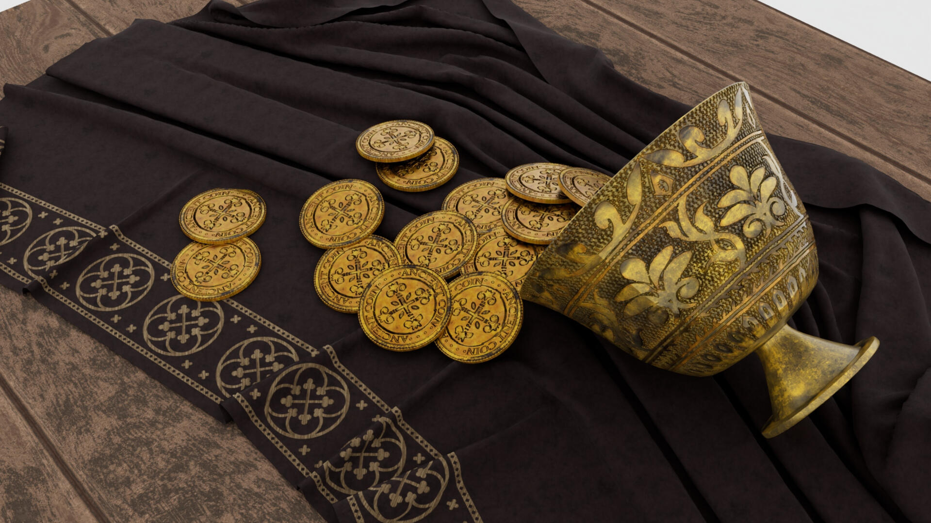 3D Model of Ancient Treasures - modelled in Maya, textured in Substance Designer.